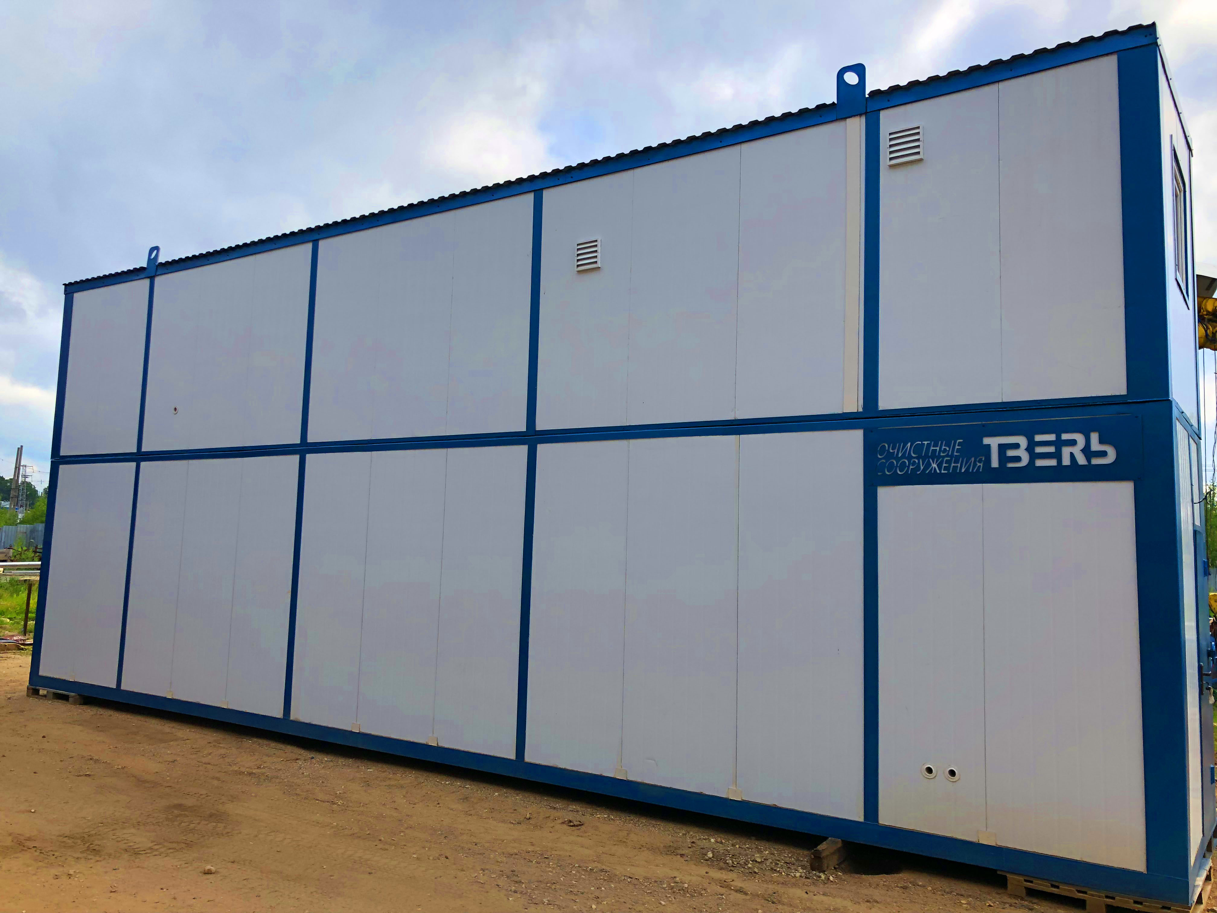 Станция очистки бытовых сточных вод "ТВЕРЬ-12С" представляет из себя утепленное здание из блок-модулей, установленных на фундаменте, со всем технологическим оборудованием внутри.